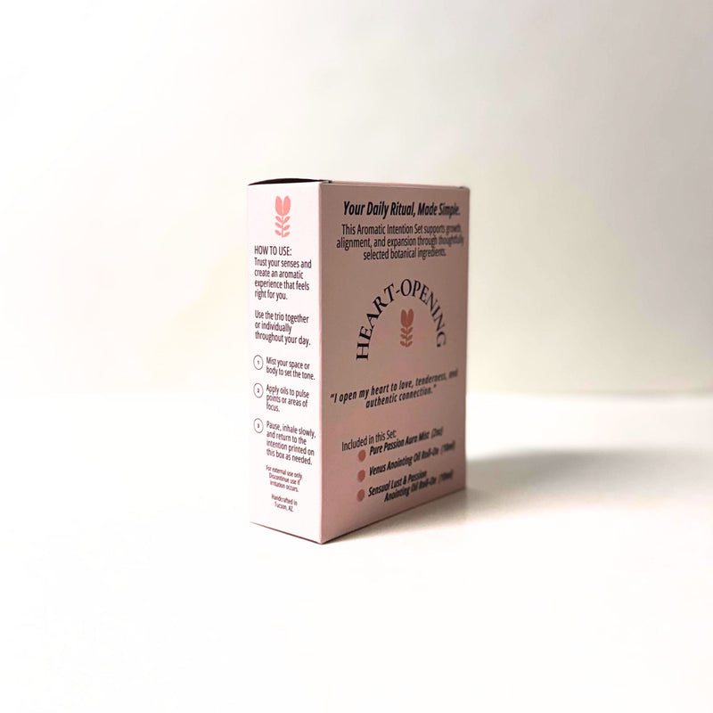Heart-Opening — Love + Connection | Aromatic Intention Set IS20 Love + Connection ES_Love_Connection Inspire P_Inspire Aromatic Intention Set F_Intention_Set Pure Passion Mist | Venus Anointing Oil | Sensual Lust & Passion Anointing Oil Floral, Warm, Resinous, Spiced Medium Evening · Anytime Gifting, self-care, connection rituals, meaningful occasions Rose Sacred Flowers Ritual Oil, Devotion Divine Scents Perfume Set, Heart & Spirit Aura Mist Rose Sacred Flowers · Pure Passion Mist ES_Love_Connection, P_Inspire, F_Intention_Set, IS_HeartOpening, U_Self_Care, U_Gifting, U_Social, U_Daily_Ritual, U_Morning, S_Floral, S_Warm, S_Spiced, S_Resinous, I_Medium