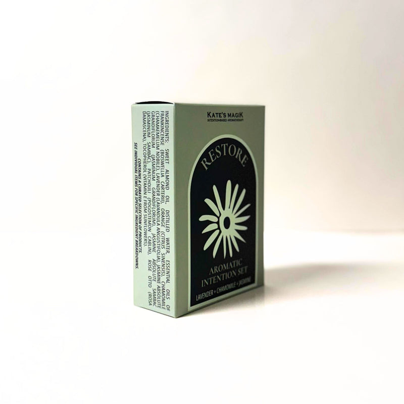 Restore — Calm + Balance | Aromatic Intention Set IS19 Calm + Balance ES_Calm_Grounded Restore P_Restore Aromatic Intention Set F_Intention_Set Sanctuary Mist | Moon Goddess Anointing Oil | Healing of the Heart Anointing Oil Floral, Herbaceous, Warm, Subtle Subtle Evening · Anytime Bedtime, evening wind-down, self-care, gifting, meditation Lavender Sacred Flowers Aromatic Mist, Heart & Spirit Aura Mist, Liberation Divine Scents Perfume Oil Lavender Sacred Flowers · Heart & Spirit ES_Calm_Grounded, P_Restore, F_Intention_Set, IS_Restore, U_Bedtime, U_Self_Care, U_Daily_Ritual, U_Gifting, U_Meditation, S_Floral, S_Herbaceous, S_Warm, I_Subtle